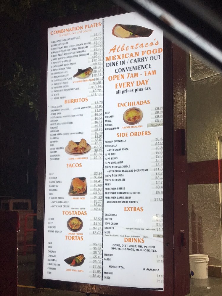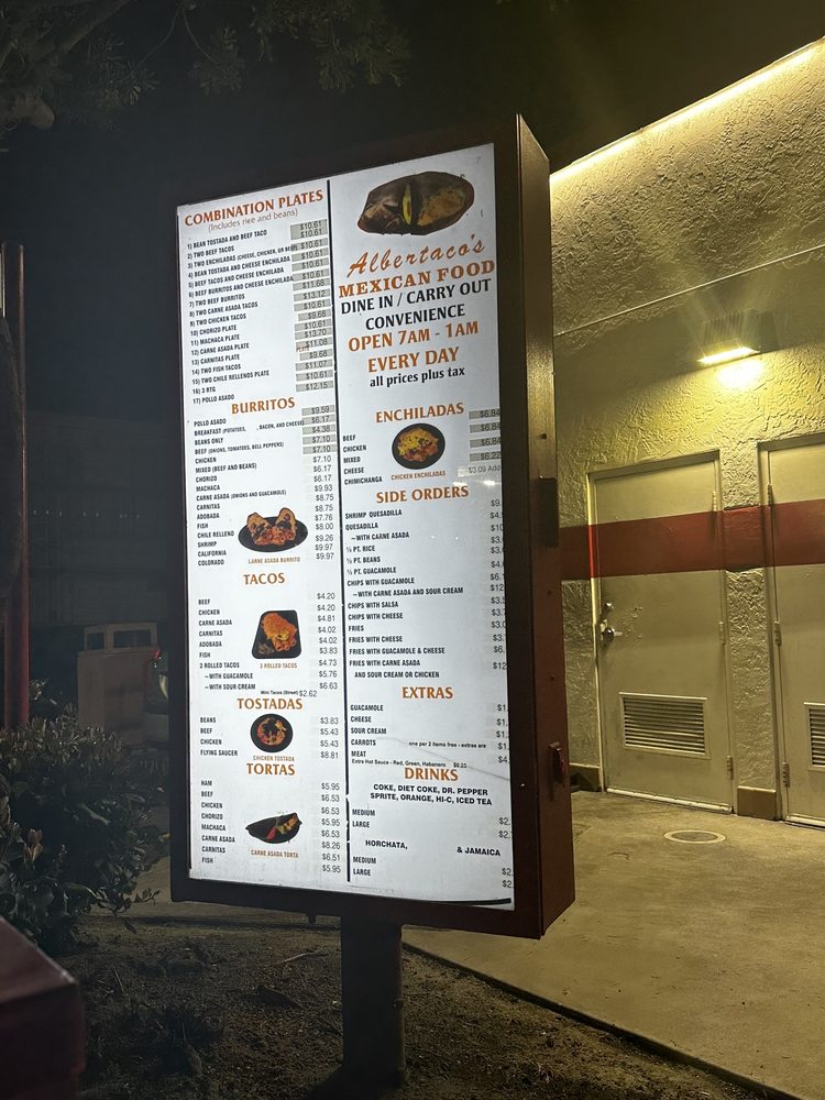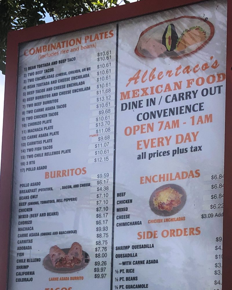 Albertaco’s Mexican Food offers a wide variety of tacos, breakfast dishes, and sandwiches in Cypress, CA. The menu includes delicious options such as Carne Asada Burrito, Carnitas Burrito, and Chile Relleno Burrito. Customers rave about the generous portions and tasty flavors of the dishes. The combination plates like the Carne Asada Tacos and Cheese Enchilada are also popular choices. The restaurant provides a casual dining experience with options for takeout, reservations, and outdoor seating. The overall vibe is laid-back and welcoming, perfect for enjoying a meal with friends or family. With positive reviews highlighting the service and food quality, the 24/7 establishment is a must-try for Mexican food lovers in the area.